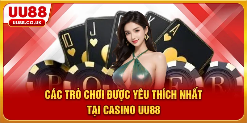 Mỗi tựa game tại casino UU88 đều có luật chơi đơn giản, dễ hiểu nhưng vẫn mang lại cảm giác hồi hộp cùng cơ hội thắng lớn cho người tham gia. Dưới đây là những thể loại casino được yêu thích nhất hiện nay.